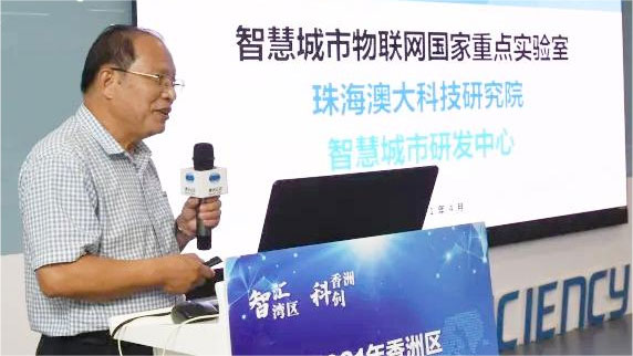 珠研院智慧城市研发中主任唐远炎教授和成都合能创越软件有限公司总经理张结斌一同参加2021 年香洲区“智汇湾区科创香洲”产学研对接合作系列活动(人工智能专场)